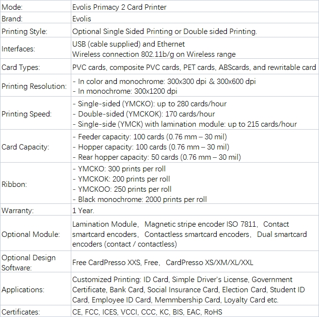 The Evolis Primacy 2 redefines production-scale card personalization with industry-leading throughput speeds and military-grade security capabilities. Engineered for continuous operation in mission-critical environments, this system combines photographic print quality with modular security enhancements to address both high-volume and high-security requirements.