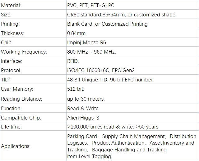 Parking Card, Supply Chain Management, Distribution Logistics, Product Authentication, Asset Inventory and Tracking, Baggage Handling and Tracking, Item Level Tagging.