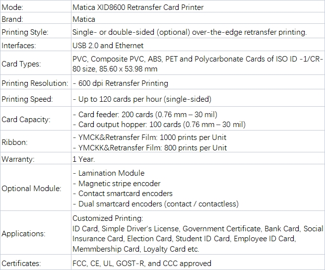 - Dual-side 600dpi retransfer – Full-card security printing without manual handling